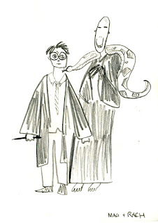 Having cable TV for a week has always been a novelty with my family, and some Harry Potter movies were on, which I have seen very little of. Any way, this stellar HP sketch was done by my sister and I 50/50, I love it :)